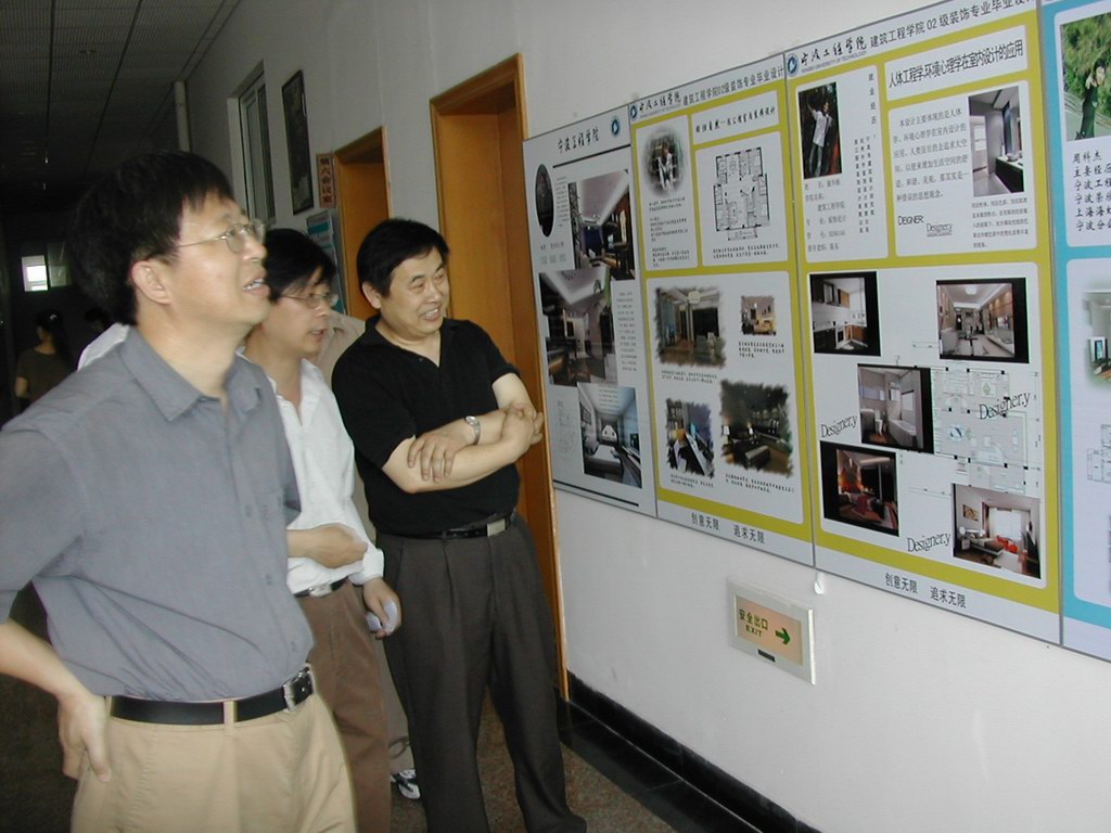 校园新闻网讯 6月1日,建工学院02级装饰专业毕业生作品在逸夫信息楼一楼向全校师生展示,学校领导高浩其院长及有关部门、学院领导前来观看作品。作品创意明显,非常优秀,得到了师生们的好评。这次作品展示是建筑装饰专业实现“全过程、零适应”教学改革项目成果的展示。近年来,建工学院不断深化教学改革,培养学生的创新能力,学生在各类大赛中获奖,个别学生被企业聘用,月薪达到6000元以上。