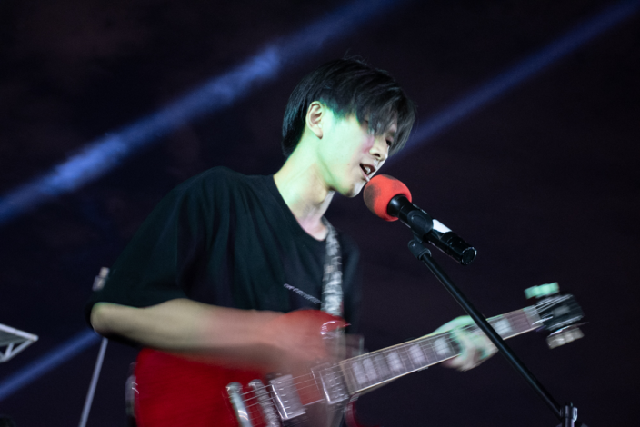 来自宁波大学的云雀 SPARROW 乐队紧接着登场,带来《GOOD BYE》《THE SUMMER WILL BE HERE SOON》两首歌曲。乐队以轻快的节奏、清新的曲风,瞬间将现场氛围拉向轻松愉悦的方向。主唱充满活力的演唱,搭配吉他、贝斯、鼓的默契配合,让观众仿佛置身夏日午后的草坪,尽情享受音乐带来的惬意,不少人跟着歌曲旋律轻轻哼唱。