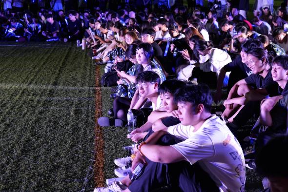 傍晚时分,夕阳的余晖尚未完全褪去,音乐节现场已人头攒动。观众席上,新生们手持荧光棒,脸上洋溢着期待的笑容;舞台旁,工作人员紧张有序地做着最后准备,灯光、音响逐一调试到位,只待演出正式开启。随着暮色渐浓,舞台主灯光骤然亮起,五彩光束交织闪烁,现场欢呼声瞬间响彻校园,音乐节正式拉开帷幕。